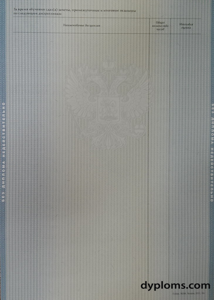 Мы готовы изготовить диплом любого российского вуза с присвоением квалификации «бакалавр», «специалист» или «магистр». Также доступно оформление полного пакета сопутствующих документов. Купить диплом о высшем образовании 2011-2013 с проводкой на нашем сайте — максимально простая и оперативная процедура. Связывайтесь с нами по телефону, через онлайн-форму или оставляйте заявки на сайте! Обрабатываем все обращения без задержек!